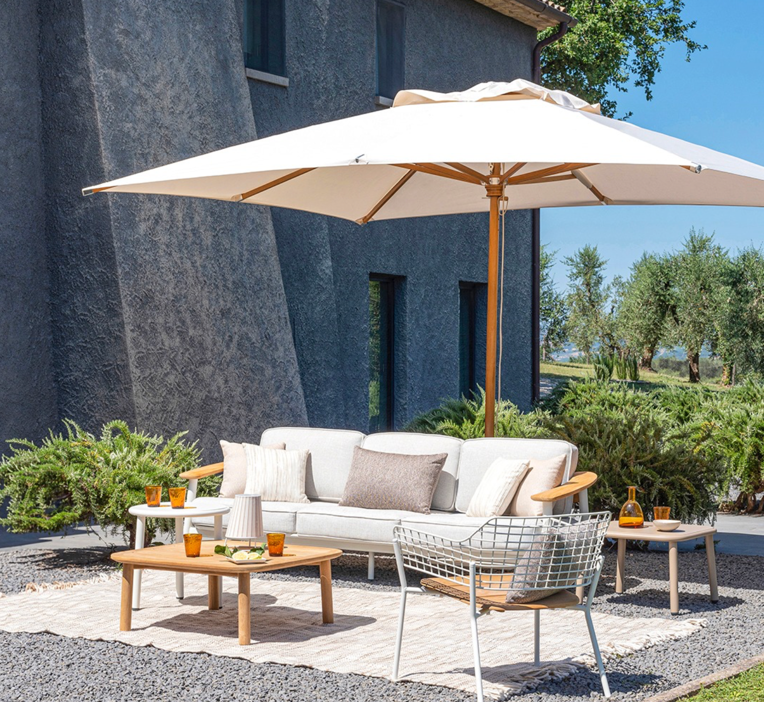 Per godersi il giardino in completo relax e proteggersi dal sole o da improvvise piogge estive, è importante prevedere zone coperte. Per piccoli spazi, gli ombrelloni sono ideali: puoi scegliere tra modelli con asse centrale o laterale e con tessuti in cotone, poliestere o acrilico. Se lo spazio è più ampio, è consigliabile optare per un gazebo o una copertura fissa, realizzati con materiali resistenti e durevoli, in grado di garantire protezione e comfort per lungo tempo.
